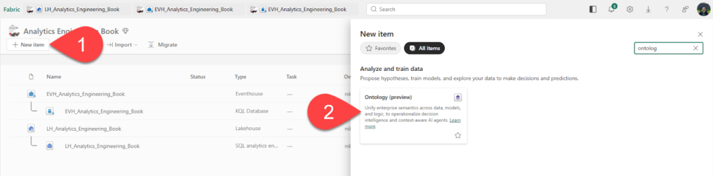 Let’s quickly see Fabric IQ in action. In this section, we will build our first Ontology. At the moment of writing, there are two options for creating an ontology: