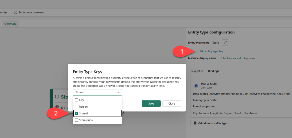 In the next step, we will add the entity type key, which is the StoreId column, as shown below: